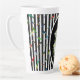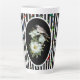 A Beautiful Latte Mug Of Birds On A Black And White Striped Mug