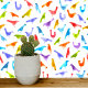 Bright watercolor rainbow coloured birds on a white background. Original art by Nic Squirrell.