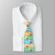 Celebration neck tie with my vector design of yellow, green, purple and red balloons on a multi-coloured wide striped background.