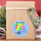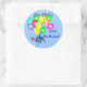 A bright, fun balloon bouquet flies through the air tied together with a blue shining star and red ribbon. Personalise these colourful stickers with any name and birthday age. Shown is "Justin's 10th Birthday!" on a light blue background. Easily change all the text and even change the colour as well as the blue background. Just click on "Customise it" and then click on "edit" and then "background" to change the colour.