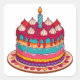 Vividly decorated layered cake with colourful icing, meringue toppings, and a lit birthday candle, creating a celebratory and festive mood perfect for any birthday celebration or special occasion.