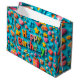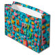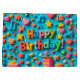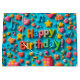 Bright and cheerful arrangement of birthday elements including gifts, hearts, stars, and musical notes on a vibrant blue background, perfect for festive and celebratory themes.