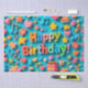 Bright and cheerful arrangement of birthday elements including gifts, hearts, stars, and musical notes on a vibrant blue background, perfect for festive and celebratory themes.