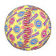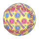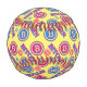 This eye-catching image showcases a repeating pattern featuring the word "BITCOIN" and the Bitcoin symbol (a stylised "B" with two vertical lines through it) in various colours. Set against a bright yellow background, the Bitcoin symbols and text are presented in blue, pink, and yellow circles. The diagonal arrangement of the elements creates a visually striking and colourful design, making this pattern perfect for use in wallpapers, promotional materials, or merchandise designs, celebrating the popular cryptocurrency, Bitcoin.