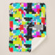 Beautiful And Stylish Colourful Blocks Abstract Art Crazy Bold Geometry Throw Blanket to add to your home / office / business décor collection. A cool present / gift idea for all who love custom design unique items, positive vibes, art, geometry, minimalism, organic theme etc. Pink, turquoise, yellow, purple, blue, green etc.