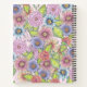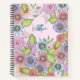 This is a customisable notebook that exudes a sense of personal style and artistic flair. The cover is adorned with an intricate floral print, a vibrant symphony of blossoming flowers in hues of pink, purple, and blue, intertwined with lush green leaves. Each flower is meticulously detailed, showcasing petals that seem to bloom right off the page, creating a stunning botanical garden on the cover. The background colour of the notebook's cover is a gentle light pink, which complements the colourful floral design and adds a touch of softness to the overall look.
