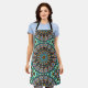 Think of blown glass art, pink, yellow, and red decorations on blue glass balls, sort of like fancy glass floats for fishing nets. They catch the light and reflect and refract colours. Spin them around with a kaleidsoscope until they form a circular mandala. This whimsical, colourful pattern provides a boho and cheery look for wall art, home decor, and apparel.