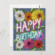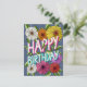Colourful Blue Floral Personalised Happy Birthday Postcard