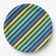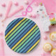 Colourful Blue Green Yellow Stripes Pattern Paper Plate