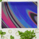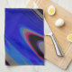 This abstract kitchen towel features a swirly fractal design in dark blue, magenta, black, and grey.