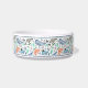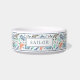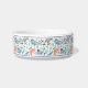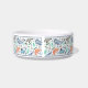 This stylish pet feeding bowl features a colourful ocean pattern, which includes various whales, a narwhal, seaweed, and splashes, over a white background. Easy to customise with your furry friend's name!