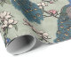 This Colourful Blue Peacock & Magnolia Wildlife Wrapping Paper features a in Chinoiserie style pattern of hand-drawn blue and teal peacocks perched on Magnolia tree branches in bloom on an elegant sage green background.