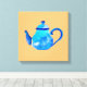 A cute watercolor llustration of a colourful blue teapot in cute illustration style. Whimsical and cute for tea lovers.
