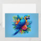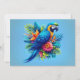 Colourful, blue tropical macaw holiday card