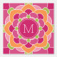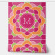 A bold, graphic design with colourful shades of pink and green -- with a fun colour flower to add your name or any text. Add your initials to this funky floral illustration. You can change the monogram to one initial. A pink background with bright green, orange and hot pink accents.