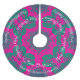 A fabulous Christmas tree skirt with a boho hippie appearance. In trendy pink and green, the patterned tree skirt displays the words 'Merry Christmas' in elegant script typography. Personalise with your name or other text, which will appear three times at the edge of the tree skirt.