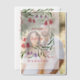 Colourful boho retro branches and folklore flowers vellum wedding Invitation. This vellum overlay wedding invitation is a vibrant display of boho retro branches and folklore flowers. The frame features a mix of retro branches in shades of dark and mint green, as well as lilac purple and peach flowers. The combination of these colours creates a colourful and eye-catching design.