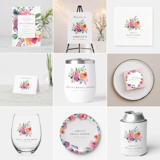 Colorful Watercolor Floral Bridal Shower SuiteDesigned by Opal Ellery