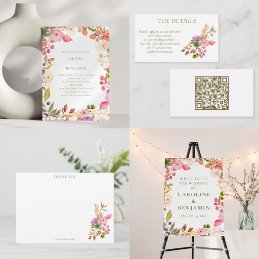 Colourful Boho Watercolor Floral Elegant Wedding Invitation
