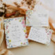 Bohemian-style arranged romantic floral minimalist invitation with colourful pastel wildflowers and botanicals in hand-printed watercolor.