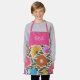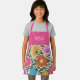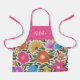 This beautiful, colourful kids' apron features a hand drawn floral design in magenta / fuchsia pink, orange, golden yellow, purple, blue, and green over a custom colour background (shown in light peach). Great for Easter egg or cookie decorating, an Easter gift, or just for the spring season! A text template is included for personalisation, making this apron a great gift!