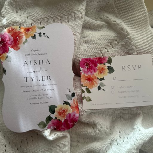 I have gotten many compliments on this invitation. I was very pleased with how it looks. The printing was just as I wanted.