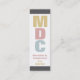 Here is a unique approach to a monogram business card. Three initials stand out in subtle colours on the right side of this skinny business card. They contrast with the dark grey panel making the top and bottom borders. The reverse reveals contact information along with any extra information you want to add or the placeholder text can be deleted easily. A great fit for many business types including marketing and communications, consultants, those in the creative field or any home-based business. Available in alternate colours with matching products.