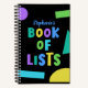 Colourful shapes of aqua, green, purple, blue and yellow on this Book of Lists. Personalise with your name on the front. The interior is the checklist option and you can change that if you like. You can also change the colour of the background and the bindiing. Fun rectangles, ovals and a triangle to make this a happy looking design.