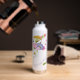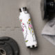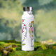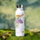 A delicate bouquet of colourful spring flowers is featured on the front and back of this water bottle. The text reads, "happiness blooms from within "