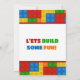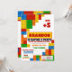 Celebrate with this colourful building blocks birthday invitation, perfect for little builders who love to create! Featuring bold colours, a fun brick-inspired design, and a playful background message, this invite sets the stage for an exciting party.