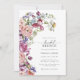 This Colourful Bridal Brunch Invitation showcases a symphony of vibrant jewel-toned wildflowers meticulously detailed in stunning shades of purple, magenta, burgundy, blush pink, dusty blue, and lush sage greenery. The hand-painted watercolor texture contributes a unique character to every piece, ensuring your invitations are truly one-of-a-kind. Get ready to capture the joy and excitement of your upcoming spring or summer bridal shower with these colourful and elegant floral invitations.