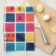 Colourful squares with crossword puzzle- displayed on a kitchen towel of chequered pattern bright, beautiful colours. Fun and interesting kitchen essential for your kitchen decor. Text place for name customisation. Part of the Plethora of Patterns Collection.