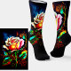 Colourful Bright Fantasy Rose Flower on Black Socks