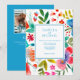 Introducing our modern "Colourful Bright Floral Wedding Invitation". This vibrant invitation features stunning orange, red, green, pink and blue floral imagery on the front, creating a lively and festive aesthetic. The beautiful sky blue background of the back of the invitation includes a customisable QR code template and a convenient photo placeholder, allowing you to add personal touches and share essential details with your guests effortlessly and under budget. Perfect for couples who love vibrant colours and simple designs, this wedding invitation beautifully captures the essence of your celebration. Make a statement with our colourful and modern wedding invitation.