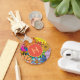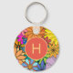 Colourful Bright Flower Power Monogram Key Ring