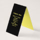 This fold over standing business card has a colourful bright lizard in yellow, blue and orange with green legs holding a green leaf on a branch. The outside of the card is black, the inside is yellow. Customise all your information on the front, back, and inside with the templates.