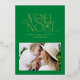 Colourful bright fun real foil script Noel Christmas geometric typography photo holiday design. Red, green, navy blue and pink colorway.