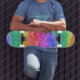This fabulous skateboard features agate design in rainbow colours with gold veins and glitter.