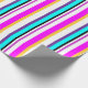 Cool, modern and trendy pink, yellow, turquoise, white, black, violet, lavender and lapis stripes in varying sizes form a bold and eye-catching pattern to this gift wrap. IDEAL FOR - Gifts for engagement, wedding, anniversary, bridal shower and birthday celebrations.