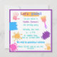 Fun and colourful square invitations for an epic painting theme birthday party with vibrant colours of pink, blue, purple, orange, and turquoise in paint strokes and paint splats with painted hand prints and a paint brush. Edit text to customise for your event.