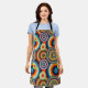 This apron has a Bauhaus design of different groups of concentric circles in 1970s colours.