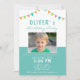 Colourful Bunting Flags Blue Photo Birthday Party Invitation. Cute and fun birthday invitation for a boy or a girl. The design has colourful bunting flags. Personalise all the text on the invitation and insert your photo into the template. This joyful design can be used for various ages.