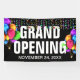 New business adventure banner featuring a black background, colourful celebration confetti, balloons, and a grand opening text template that is easy to personalise.