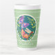Colourful butterflies on green, personalised latte mug