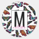 Colourful Butterflies Watercolor Pattern Monogram Classic Round Sticker