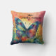 Exquisite butterfly decorator throw pillow featuring a stunning watercolor painting of a vibrant butterfly amidst a bed of blooming flowers. With its captivating colours and delicate details, this pillow is a true work of art that will bring joy to your home. Customisable text says, "Live every moment."