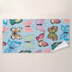 This cute and colourful bath towel set features a fun pattern of butterflies on a light pastel blue background. Great gift idea!