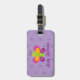 Personalised luggage tag featuring a colourful butterfly with a beautiful purple floral background. Cute and fun design for special for girls. Custom monogrammed gift.