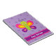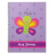 Personalised notebook featuring a colourful butterfly with a beautiful purple floral background. Cute and fun design for special for girls. Custom monogrammed gift.