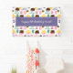 Add a custom touch to your child's birthday party with this adorable personalised banner sign. Banner has a pattern of colourful cakes with candles and balloons. Add a custom message, such as happy birthday and your little one's name and age.